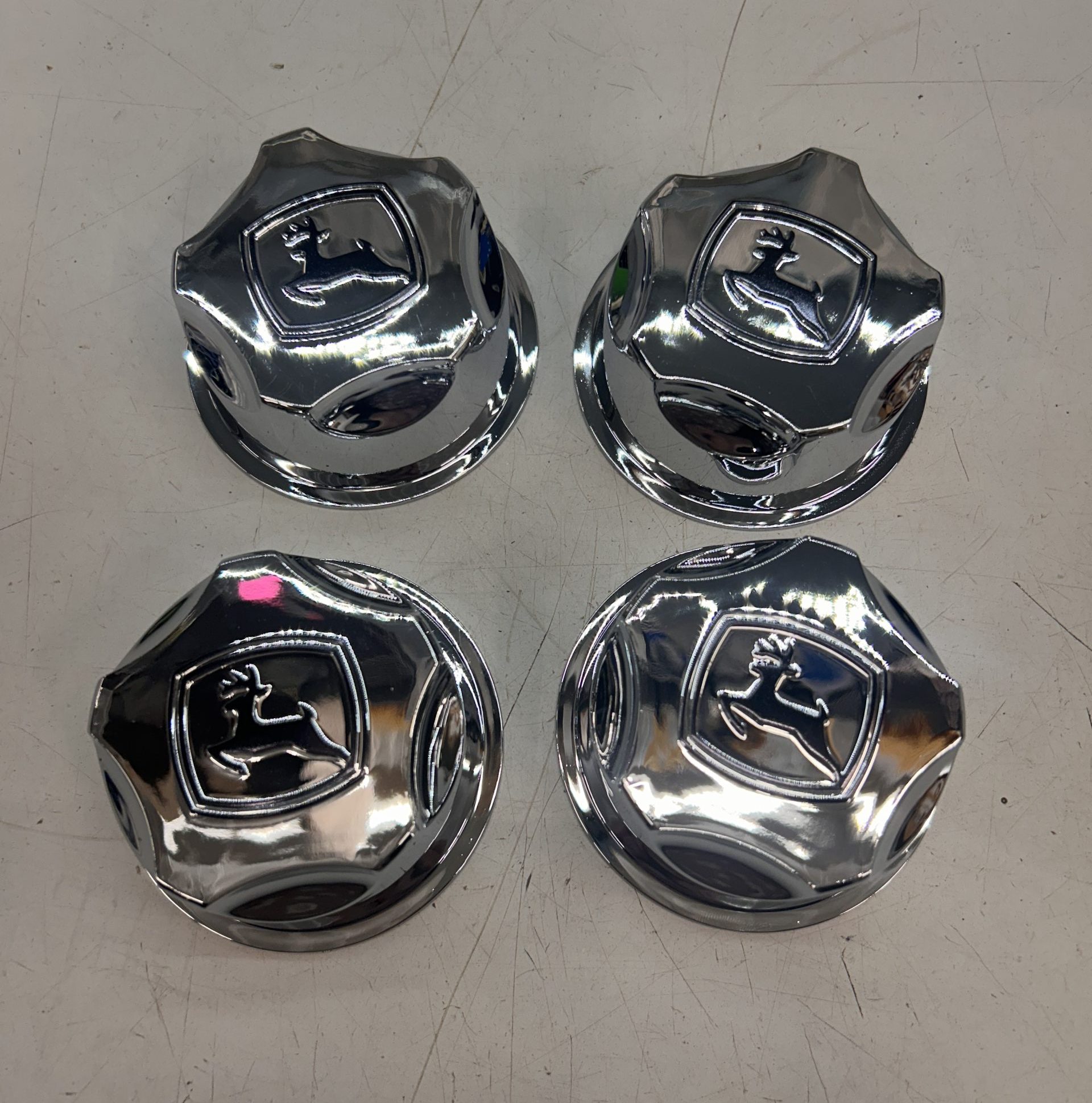 JOHN DEERE 850D 620I XUV GATOR SET OF 4 CHROME CENTER HUB CAPS M157846